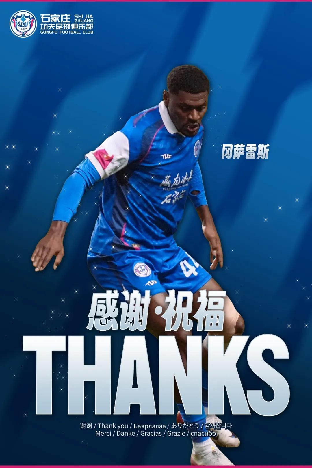 三位球员在效力石家庄功夫期间,始终秉持专业严谨的职业态度,带着顽强拼搏的赛场作风,用一次次稳定且精彩的表现,赢得了俱乐部全体同仁的认可,更收获了每一位石家庄功夫球迷的喜爱与敬意。在此,石家庄功夫足球俱乐部向何塞·阿约维、丹克莱尔、冈萨雷斯三位球员,致以最诚挚的感谢和最美好的祝福。