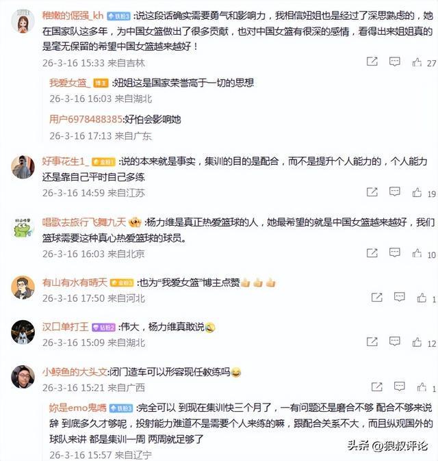 杨力维是真正热爱篮球的人,她最希望的就是中国女篮越来越好,我们篮球需要这种真心热爱篮球的球员。